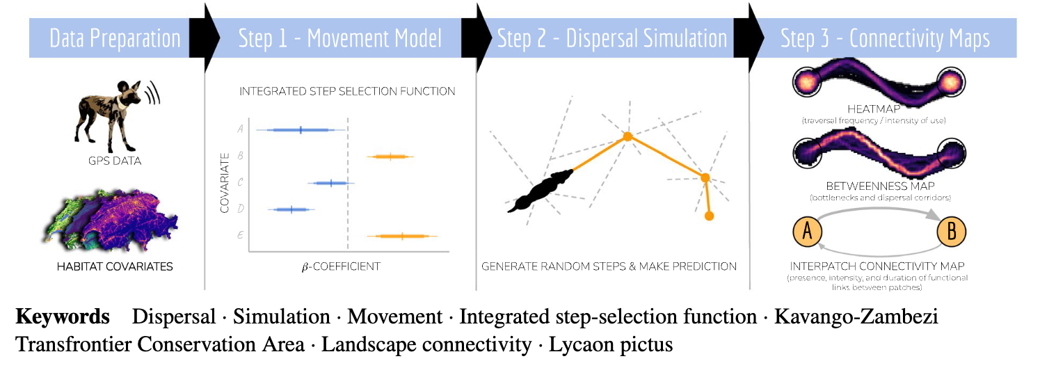 A three-step approach for assessing landscape connectivity via simulated dispersal: African wild dog case study